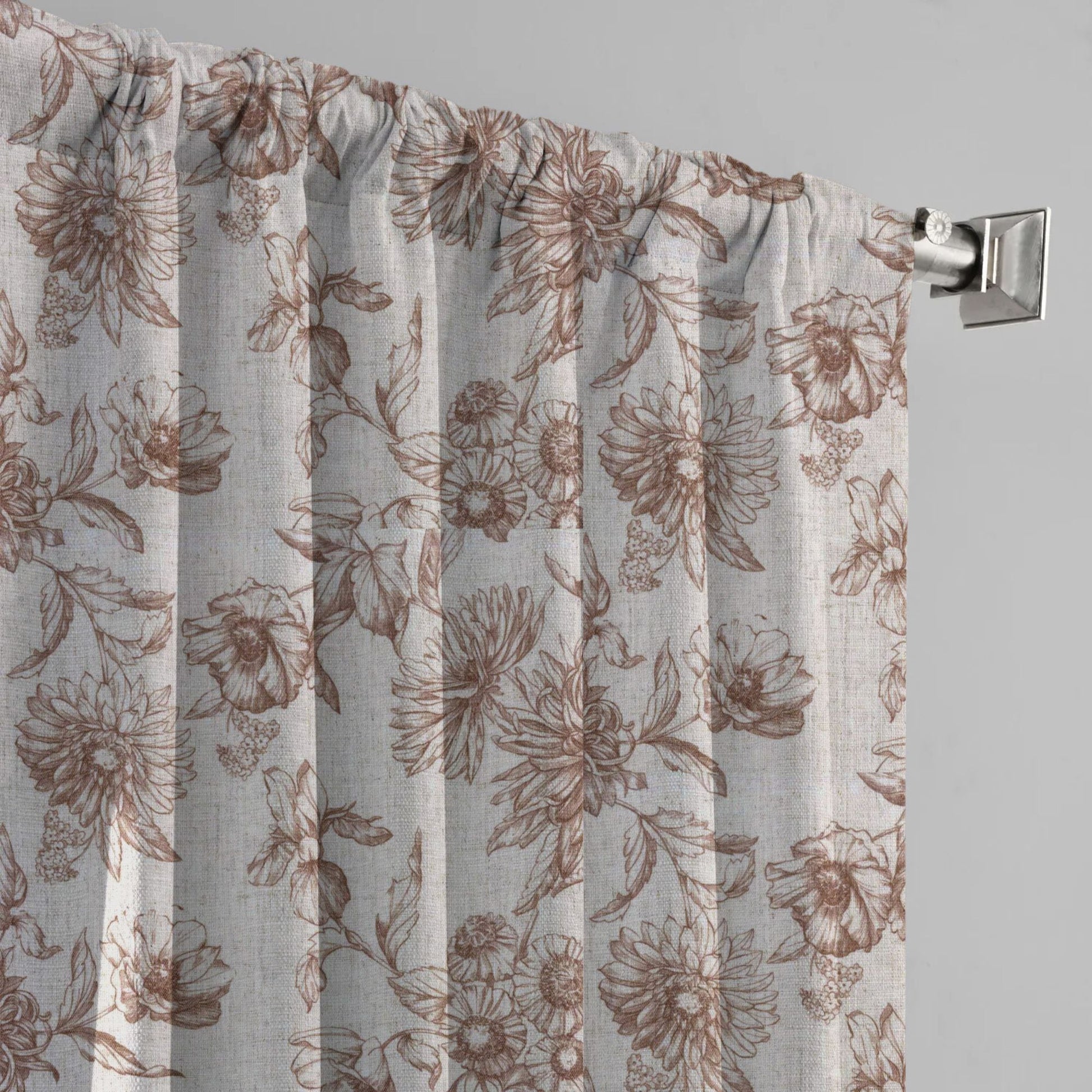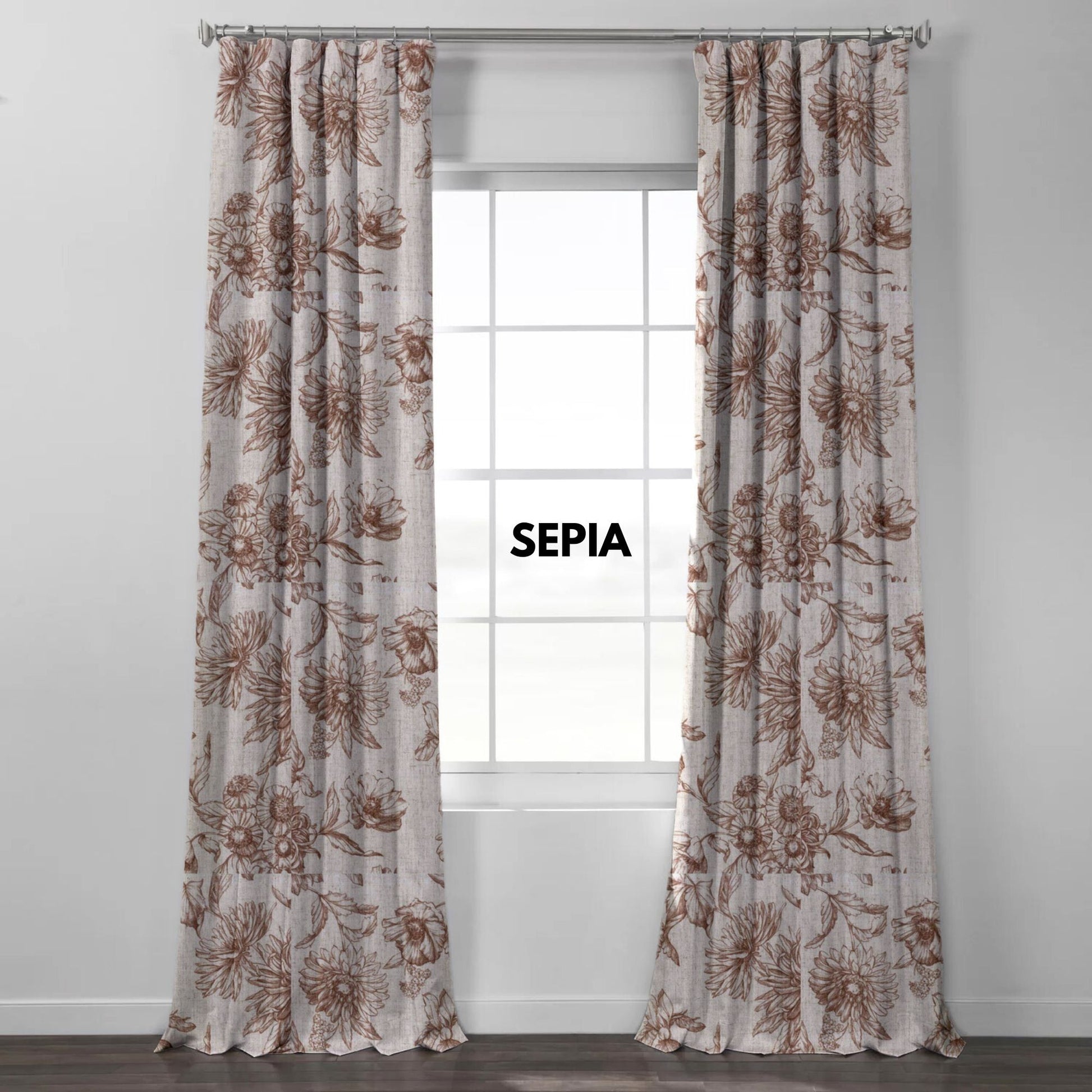 Rideaux en lin à motifs floraux peints à la main | Sur mesure | Options occultantes et doublures en coton | Simple et paire
