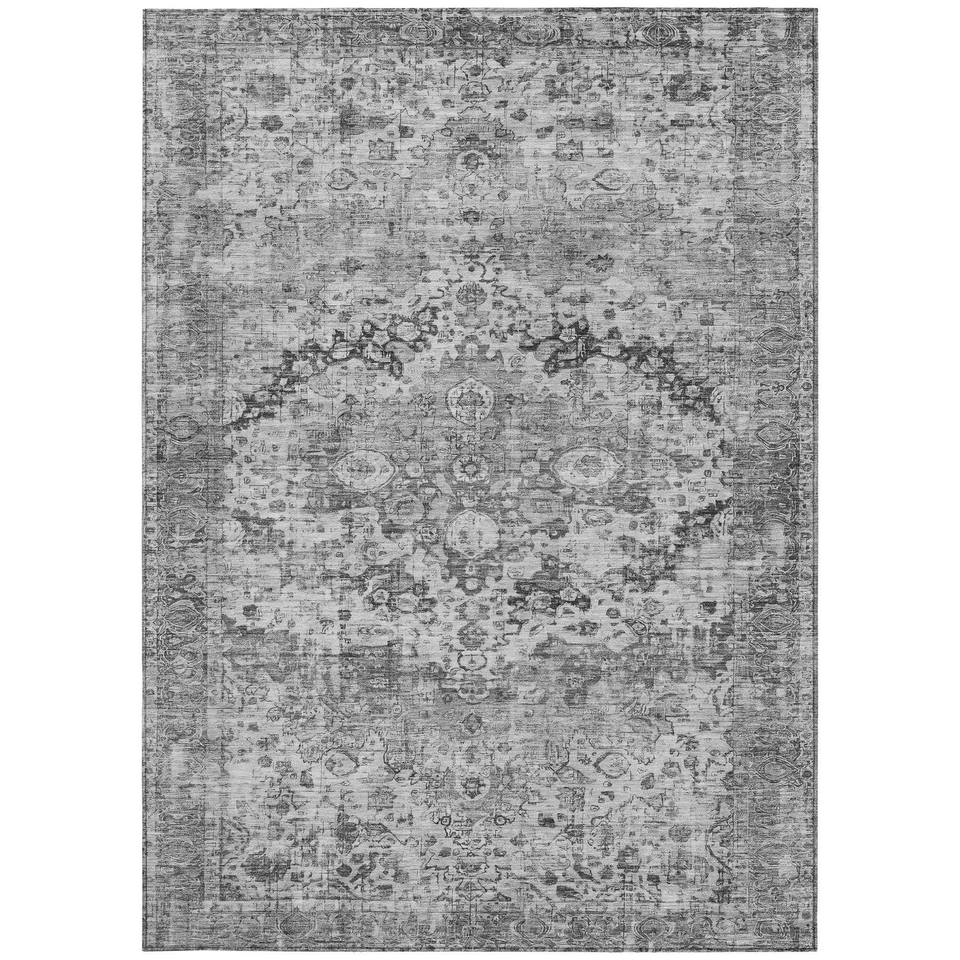This 10-foot x 14-foot gray and silver floral washable indoor outdoor area rug, is a great way to add warmth to a room. This rectangle shaped rug features a floral design that will work well both indoors or out. A classic shape marries with good looking design for your living room, hall, bedroom, porch, patio, or poolside. Ideal for outdoor spaces or high traffic areas with kids and pets, this rug is made from heavy duty polyester that is stain resistant to help repel water, dirt, and stains. Versatile in use, durable, and easy to maintain, this rug is an ideal solution to add a decorative and inviting touch to your indoor or outdoor space. 120-inch h x 168-inch w x 0.19-inch d.