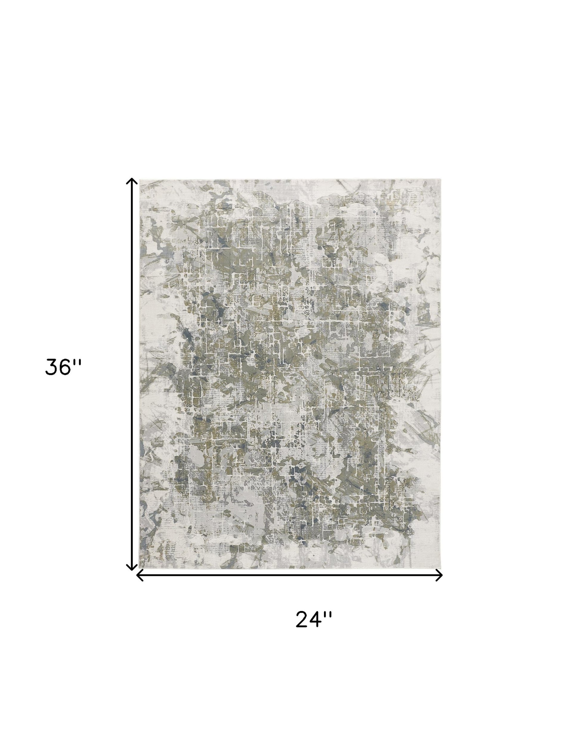 2' X 3' Green Gray And Ivory Abstract Distressed Stain Resistant Area Rug
