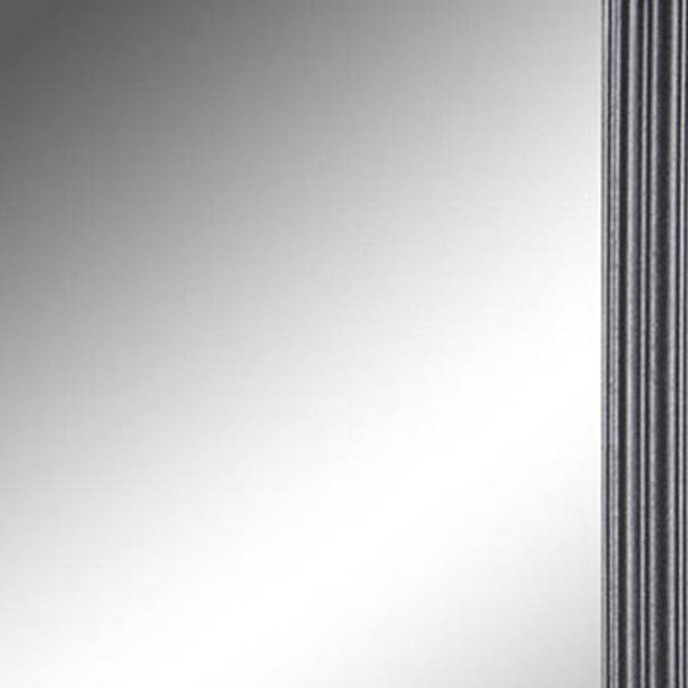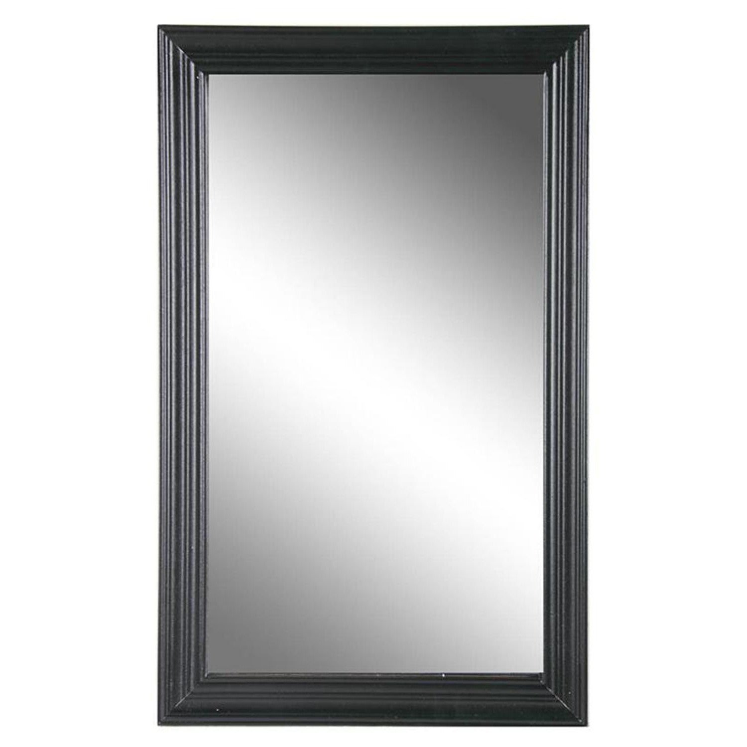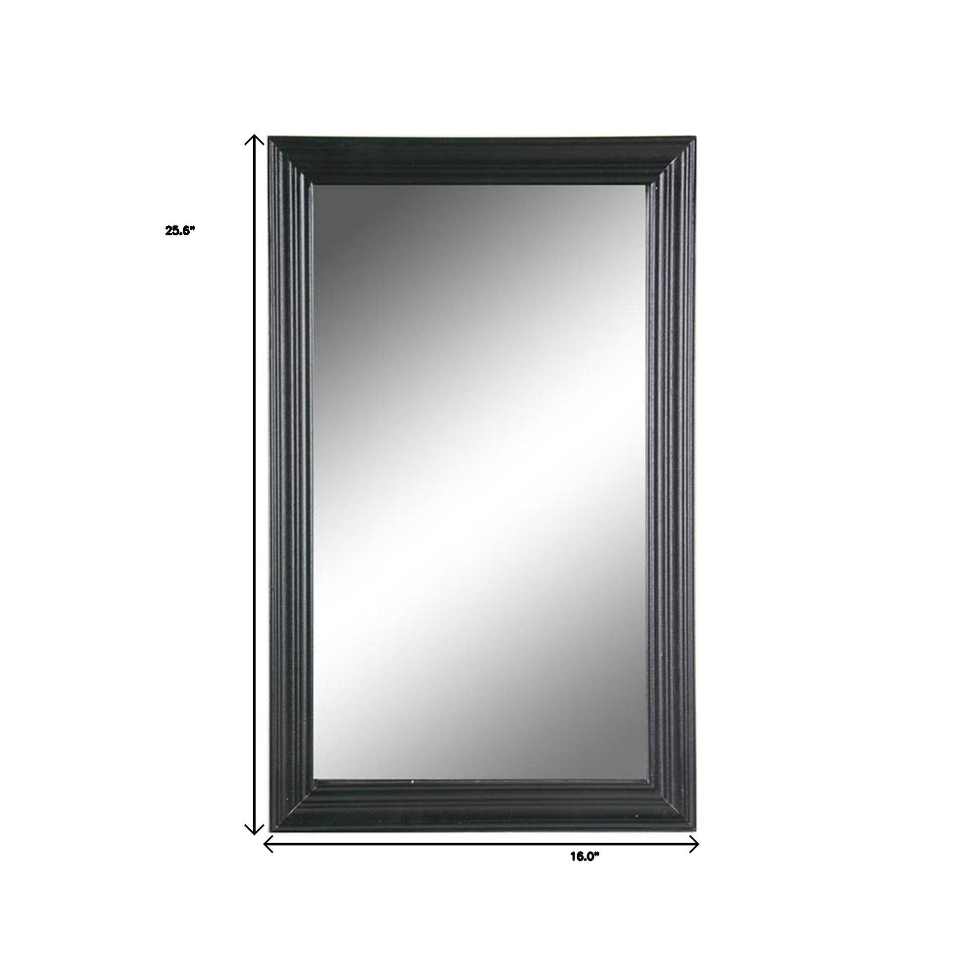 This 26-inch black beveled lines framed accent mirror is an embellishment perfect for your rooms. The rectangle shaped mirror features a wide frame with beveled line detailing that adds a nice touch of depth and texture. The transitional style of this piece will work great in any room you choose to put it in. This mirror can fit perfectly in any space and give that space a distinctive look. 25.6-inch H x 16-inch W x 0.8-inch D