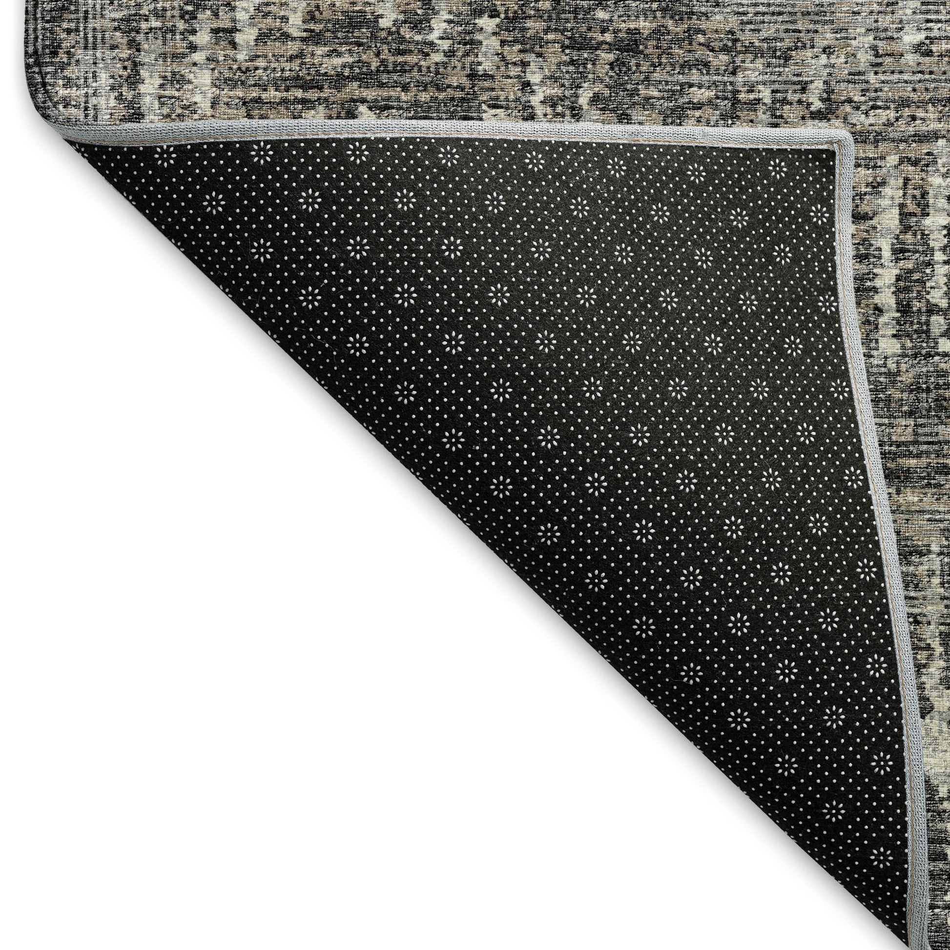 This 5-foot x 8-foot graphite ivory and beige abstract washable area rug with uv protection, is a great way to add warmth to a room. Ideal for spaces with kids and pets, this rug is stain resistant to help repel dirt and spilled liquids. Built to last, this rug crafted from polyester fibers is known for its durability and long lasting appeal. Rugs are a great way to showcase your style, hide imperfections, warm your home and reduce noise. This larger sized, transitional styled rug is ready to create a focal point or statement piece in your room. 60.00-inch h x 90.00-inch w x 0.39-inch d.