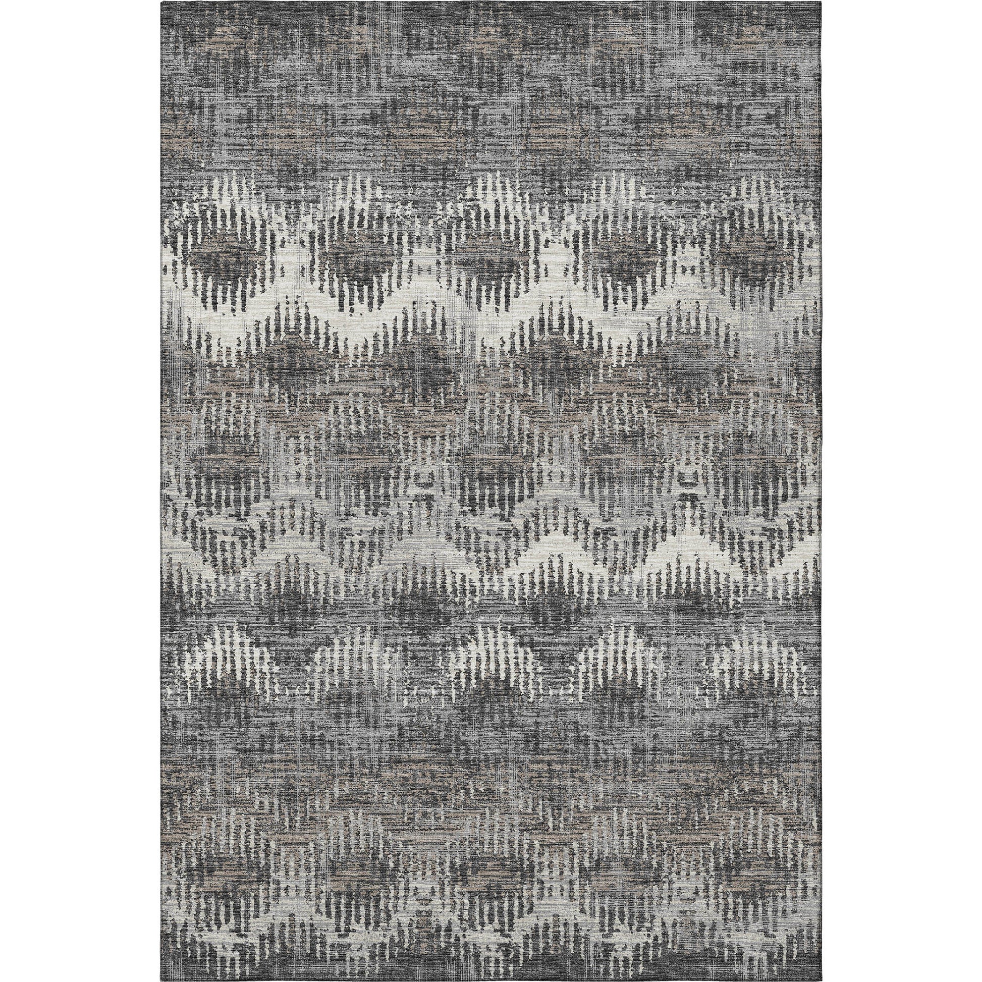 5' X 8' Graphite Ivory And Beige Abstract Washable Area Rug With UV Protection