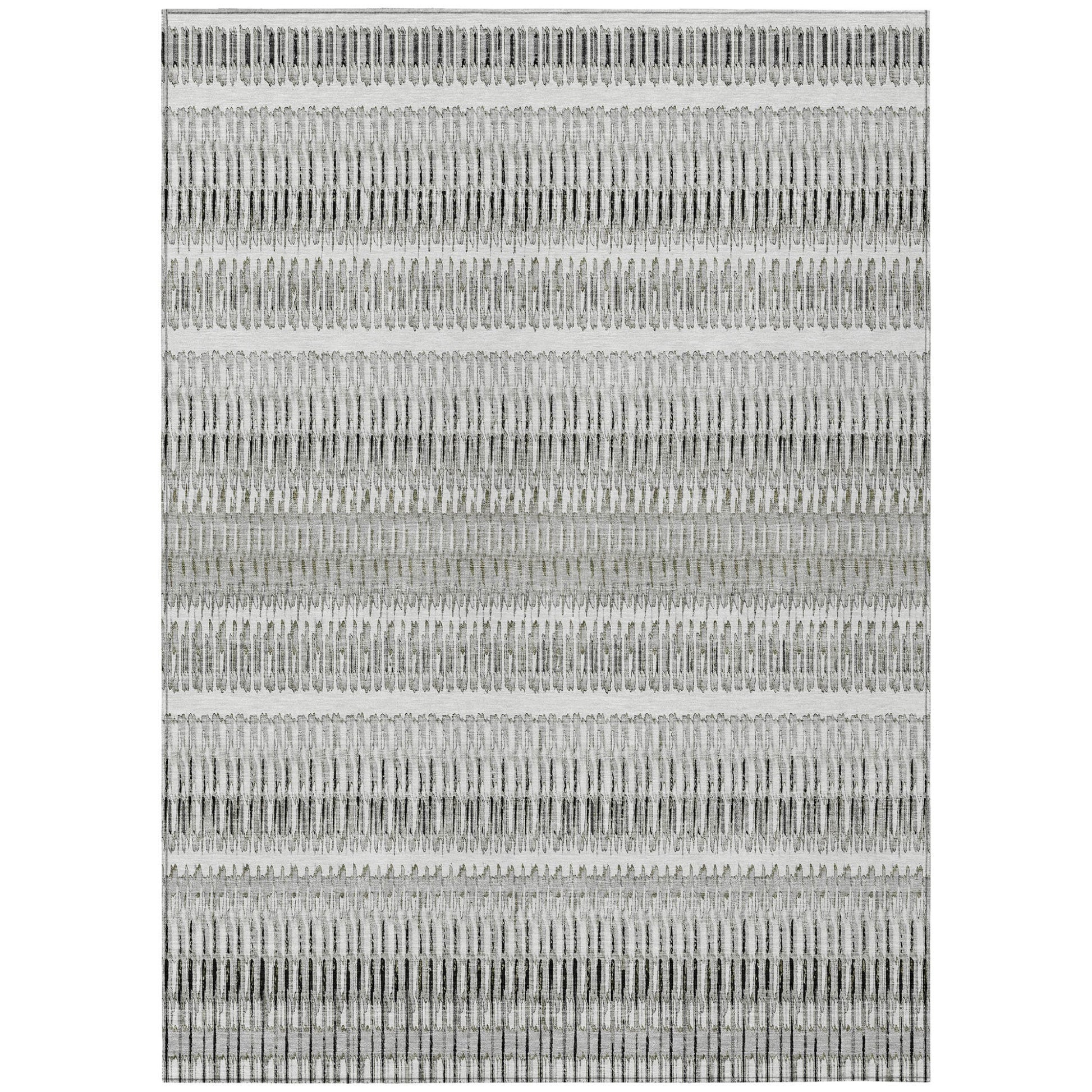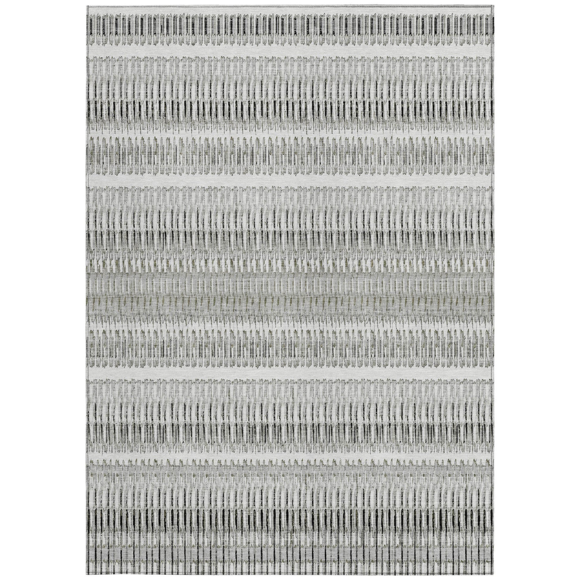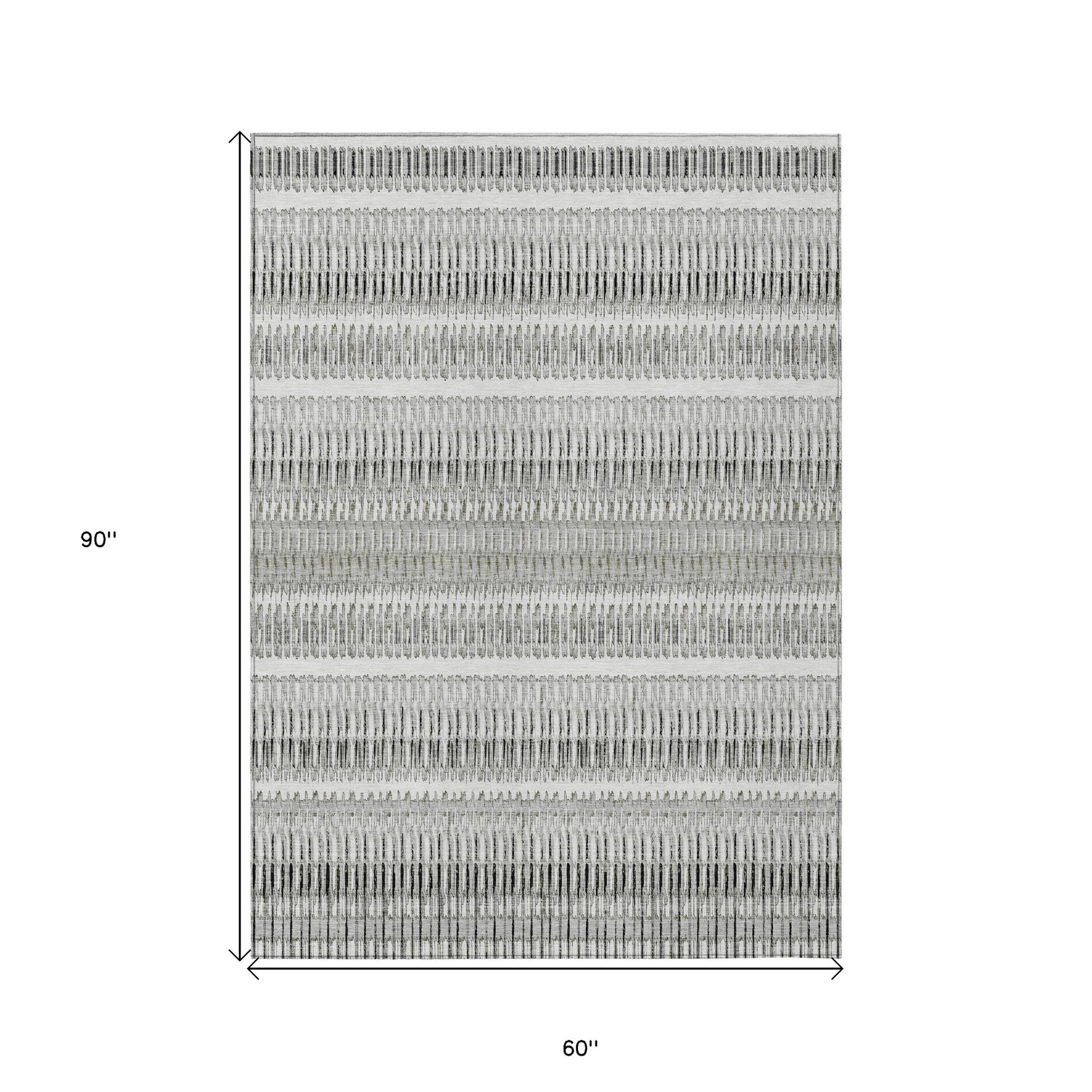 5' X 8' Ivory Gray And Taupe Striped Washable Indoor Outdoor Area Rug