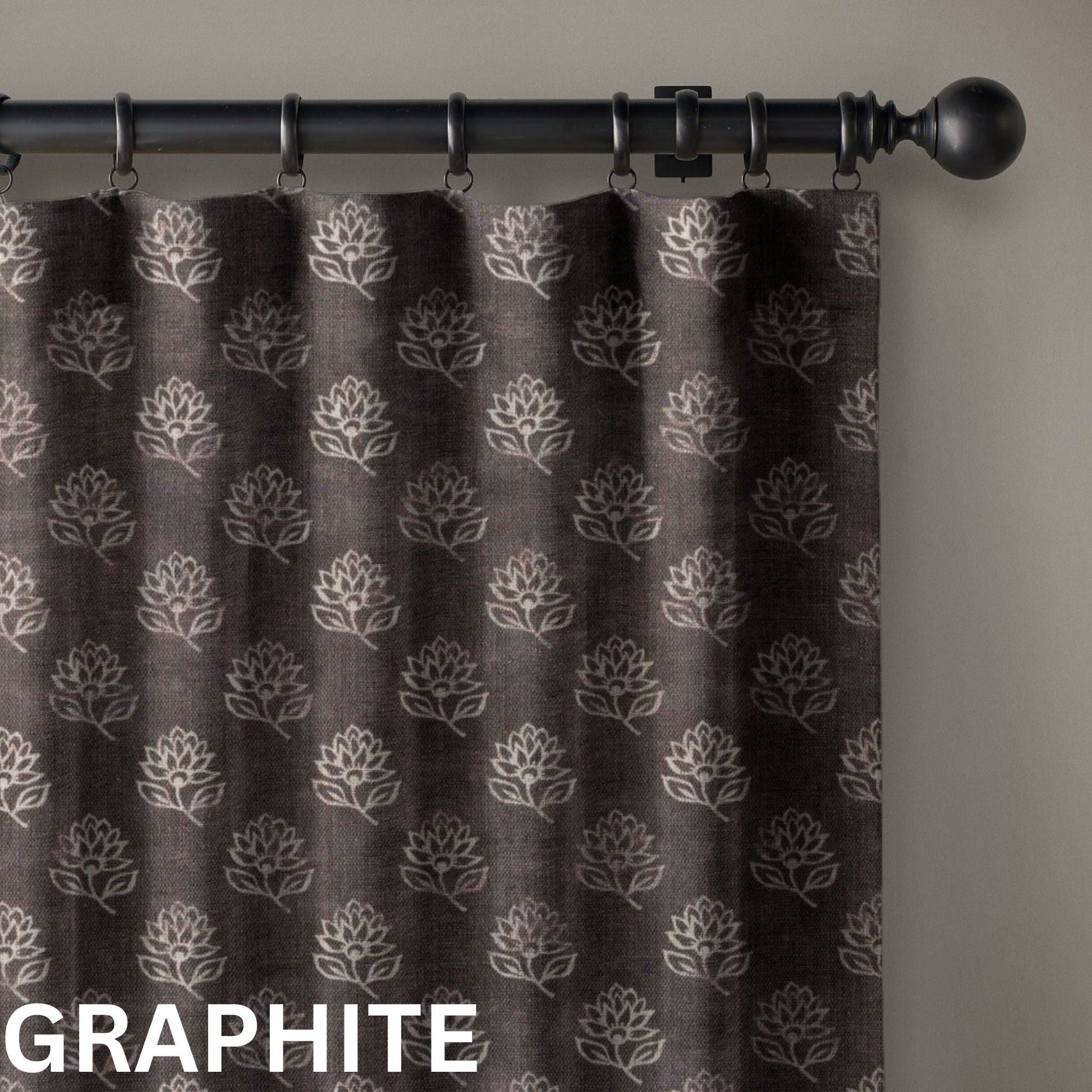 Aurelia Block Print Floral Linen Curtains UK | 3 Colours | Custom Size, Blackout & Cotton Lined