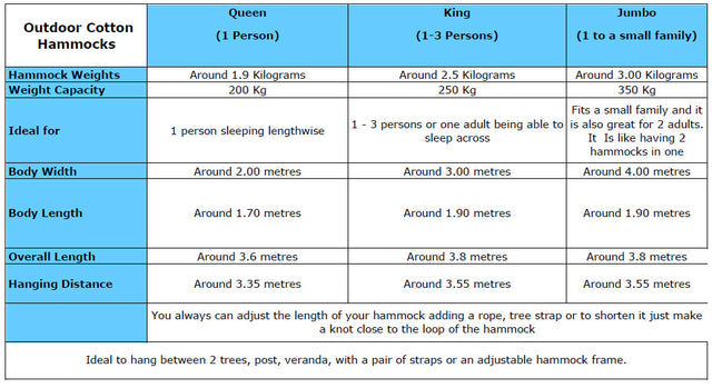 All the support you need for up to three adults. If planning to share your hammock space frequently with a close friend or loved one then the King size is made for you. If looking for the best overall value in comfort and size then the King size is it.