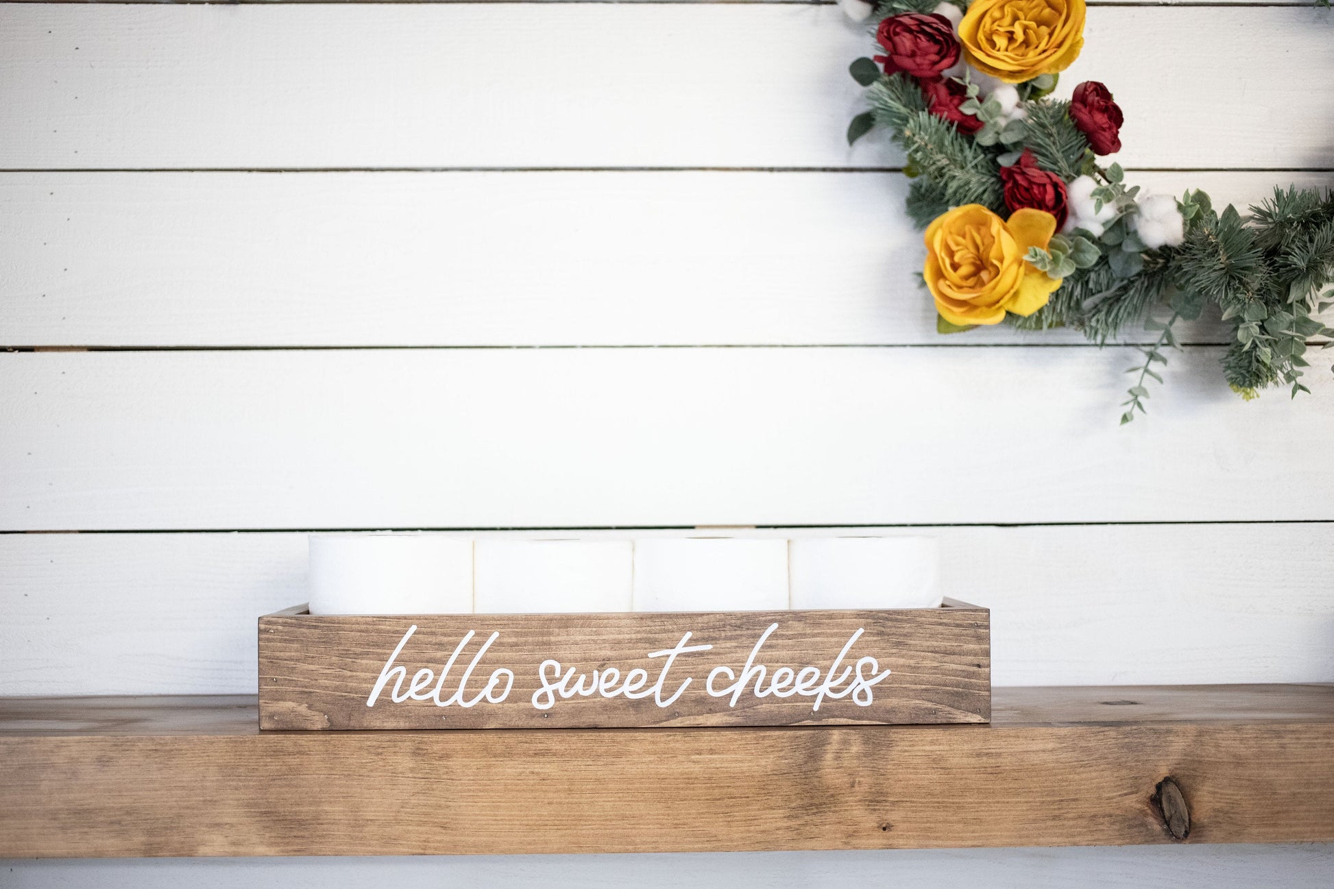 PLEASE NOTE- Hand crafted in NY with new pine. Each piece is custom made from new wood. Wood grain variations and/or knots are to be expected and will vary from the picture shown. Due to the character of wood, sometimes knots or imperfections are present. We feel that slight imperfections help add to the character of our handmade items. Boxes are not filled. Toilet paper not included. *Lettering is on 1 side of the box only. * The natural variations in wood products include, but are not limited to... wood grain pattern, color variations, hairline cracks, small dents or scratches, knots, and/or mineral streaks.